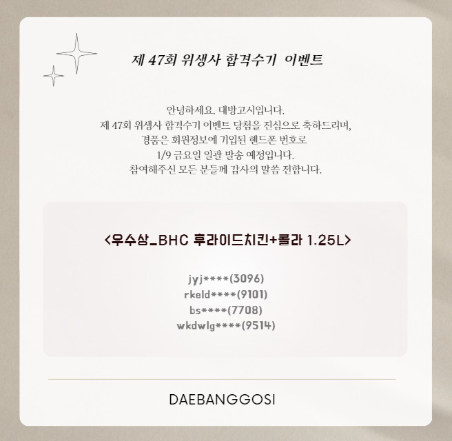 [당첨공지] 제 47회 위생사 합격수기 이벤트 당첨자 안내